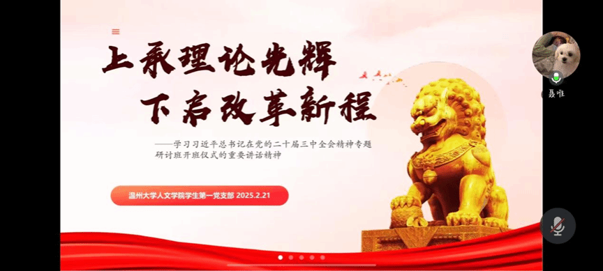 2025年2月21日晚上,金沙集团1862cc学生第一党支部举办了“上承理论光辉,下启改革新程”主题党日活动,通过学习习近平总书记在党的二十届三中全会精神专题研讨班开班仪式的重要讲话精神,不断深化对新时代全面深化改革的认识,进一步统一思想和行动。本次活动由聂唯同志主持,支部全体党员同志参加。