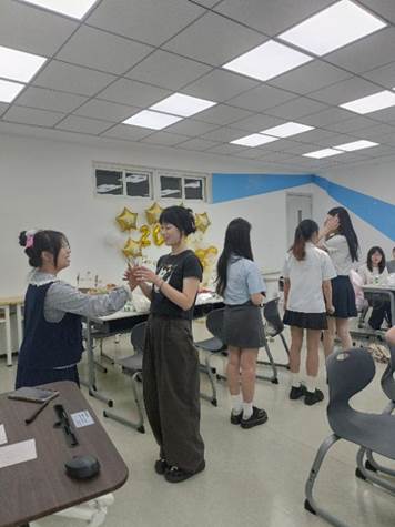 “薪火相传”寄语环节在浓厚温情氛围中展开。该环节包含两部分内容。第一部分中,毕业生党员与在校党员分别在卡片上写下对一年后自己的寄语,共同投入“时光胶囊”,由支部统一封存保管,计划于次年寄送。第二部分中,双方成员在卡片上进行双向留言。毕业生党员们表达了对党组织的感言以及对学弟学妹经验分享和衷心期盼,在校党员则书写对毕业生党员的祝福与不舍。现场随机抽取卡片,邀请大家相互交流分享。真挚的祝福与回应引发热烈反响,这是支部的组织关怀也是支部的精神传承。每位参与者随机抽取一张寄语卡片作为纪念,他们将带着学长学姐的祝福继续茁壮成长。