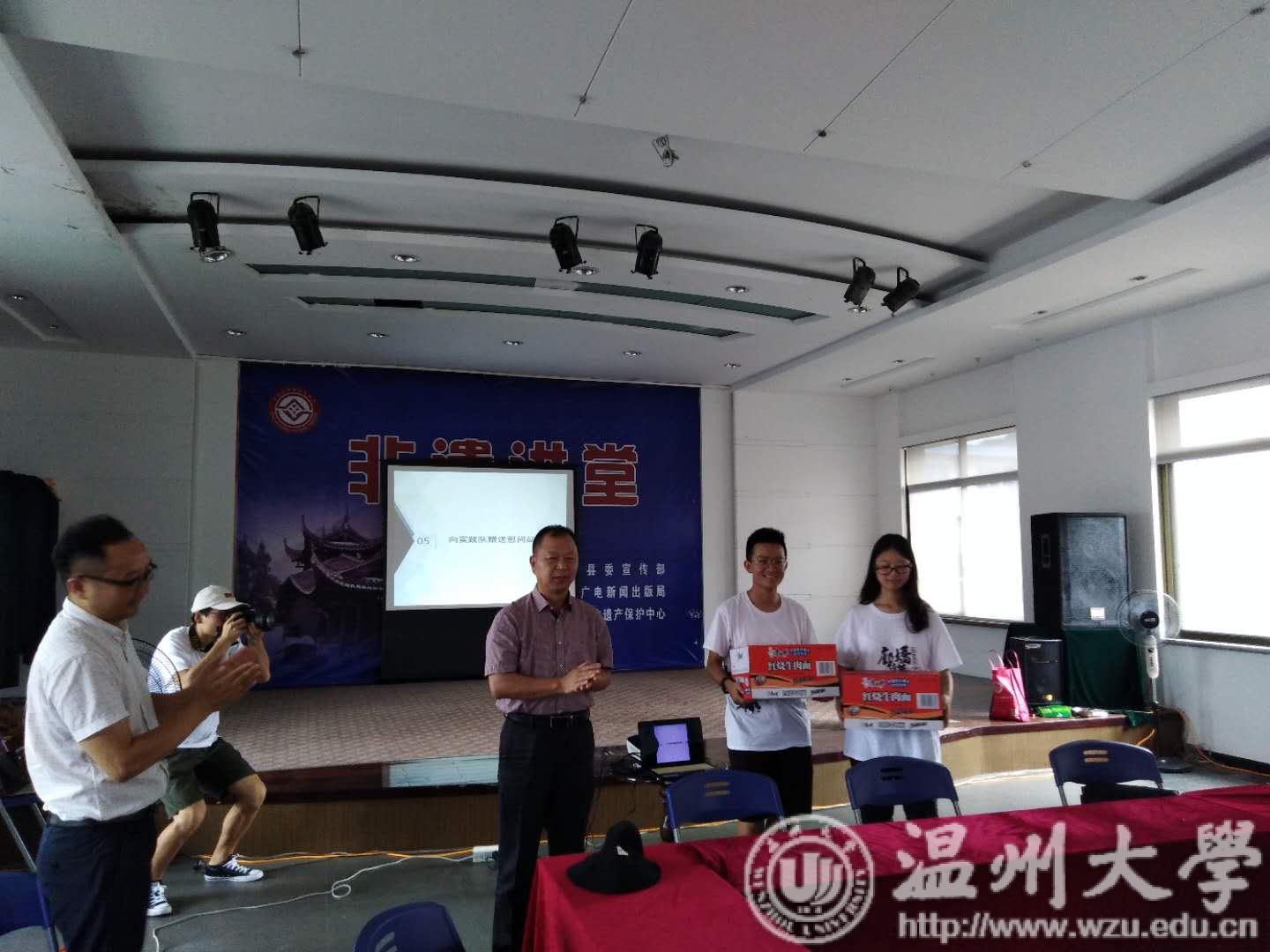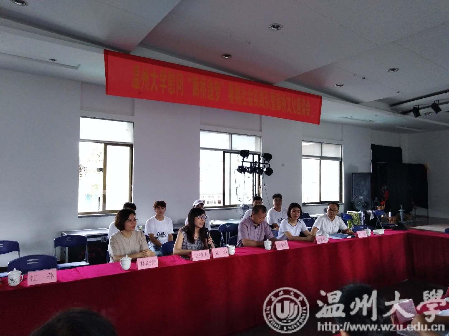 吴金法书记等一行来到实践队的实践基地——泰顺县非遗中心,吴金法书记首先询问起同学们的实践情况,并与实践队的全体成员一起观看了生动的泰顺木偶戏,木偶戏表演老艺术家们的精湛技艺得到了大家连声赞扬与钦佩。在座谈会上,首先泰顺县文广新局林成起委员讲述了泰顺县的历史发展与重要地位,为大家具体介绍了泰顺廊桥文化并对金沙集团1862cc师生对泰顺廊桥的调研和宣传表示感谢。之后实践队成员就实践期间的具体活动安排和廊桥保护等问题提出了自己的看法与设想。最后吴金法书记对座谈会做了总结性发言,他指出泰顺廊桥具有历史、科学、艺术、经济多重价值,是集文化遗产与非物质文化遗产特质于一身的文化古迹,金沙集团1862cc的大学生通过暑期社会实践的形式,不仅为泰顺廊桥的新生和宣传尽一己之力,同时,也有利于提高大学生的综合实践能力和社会服务意识。最后,吴金法书记为实践队成员赠送了慰问品。