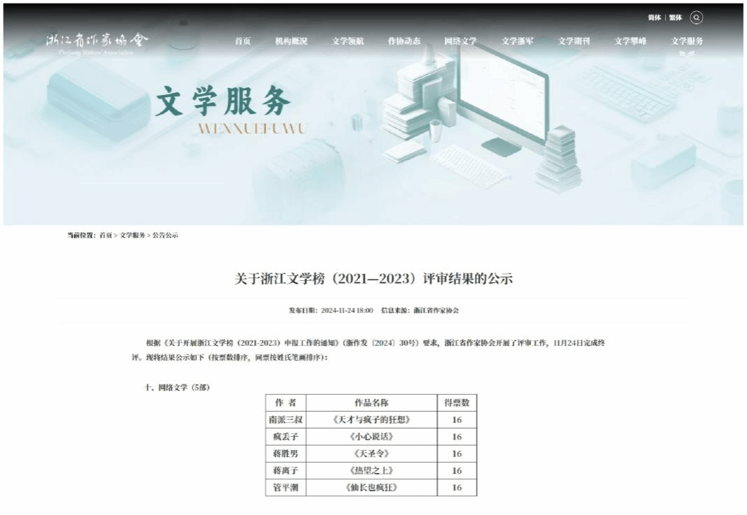 近日,浙江文学榜(2021—2023)最新发布,金沙集团1862cc研究员蒋胜男长篇网络历史小说《天圣令》上榜!
