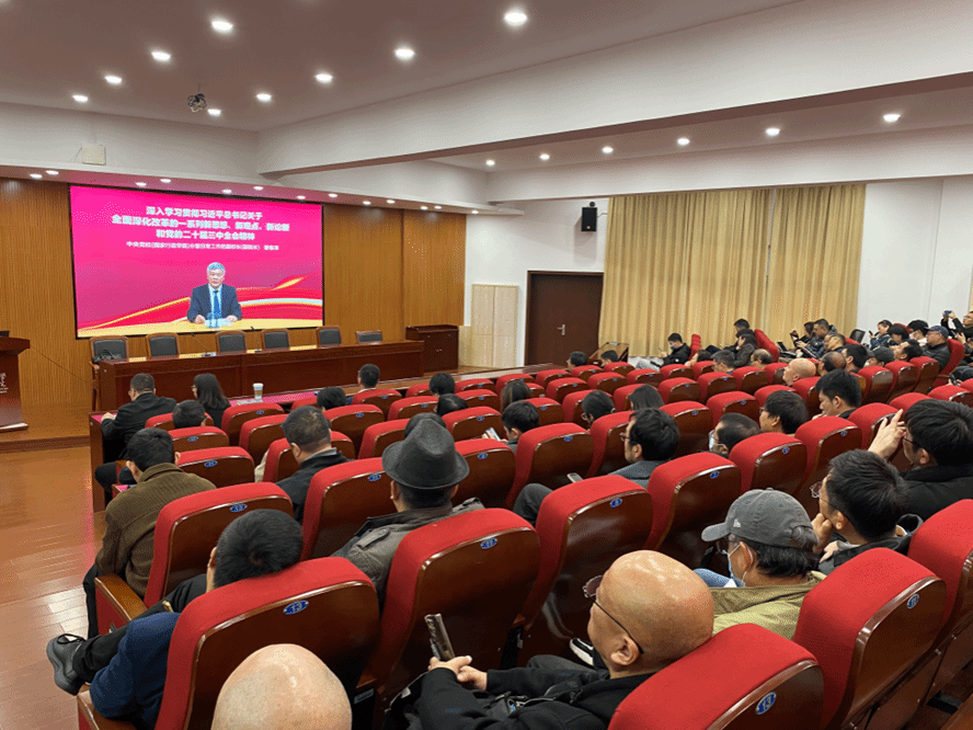 2024年12月11日下午,金沙集团1862cc学习贯彻党的二十届三中全会精神集中轮训于人文楼203学术报告厅准时开展。全体教工党员出席。
