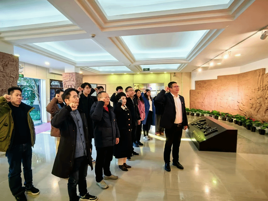 在温州革命历史纪念馆内,全体党员整齐列队,面向党旗,庄严地重温入党誓词。“我志愿加入中国共产党,拥护党的纲领,遵守党的章程,履行党员义务,执行党的决定,严守党的纪律,保守党的秘密,对党忠诚,积极工作,为共产主义奋斗终身,随时准备为党和人民牺牲一切,永不叛党。” 一句句铮铮誓言,在空气中回荡,掷地有声。党员同志们神情庄重,目光坚定,以铿锵有力的宣誓声,再次铭记自己的初心与使命。
