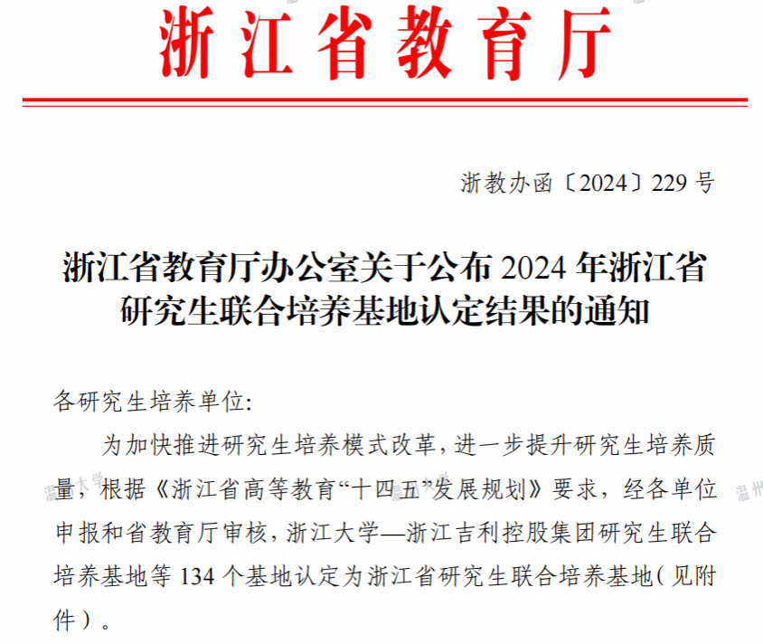 近日,浙江省教育厅发布《关于公布2024年浙江省研究生联合培养基地认定结果的通知》,金沙集团1862cc新闻与传播专业与温州市新闻传媒中心联合共建的研究生联合培养基地成功认定为省级研究生联合培养基地。