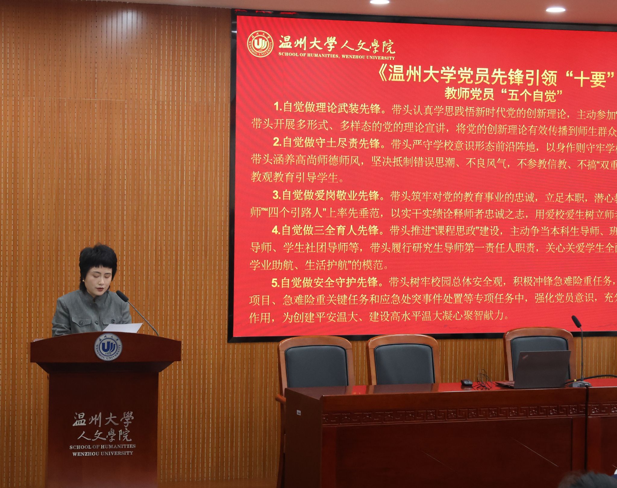 余琼老师作为党员教师代表发言。她表示,作为人文教师,既要守好“传道授业”的初心,也要勇立“教育变革”的潮头,共同为开创金沙集团1862cc的美好明天而努力奋斗。