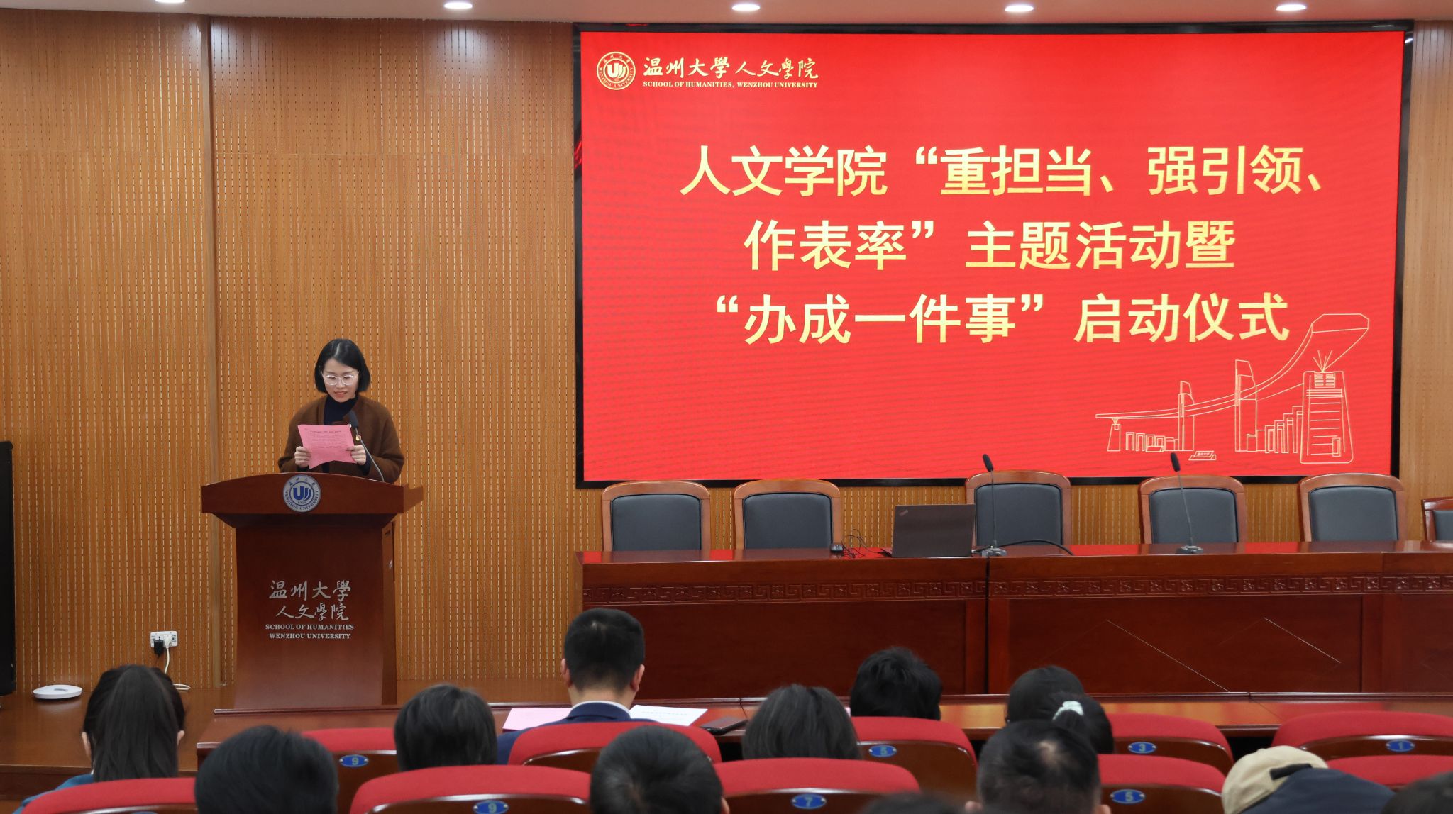 学院党委副书记黄玮主持“重担当、强引领、作表率”主题活动暨“办成一件事”启动仪式。她指出,全体党员要关注学生学业规划、心理健康、职业发展,加强与学生谈心谈话,提升人才培养质效。黄玮副书记现场宣读《金沙集团1862cc党员先锋引领“十要”》,希望党员同志以“十要”为行动标尺,走在前、树榜样、做表率。