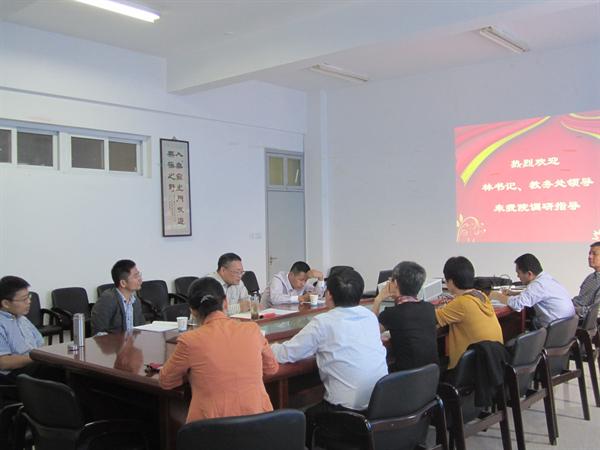 10月17日下午,校党委副书记林娟娟教授带队,教务处处长施晓秋、副处长王佑镁、周荣、蔡桂平,教师教育发展中心林彩芬科长一行6人莅临金沙官网调研并指导工作。学院蔡贻象院长、刘建国副院长、各专业负责人、教学科老师一同参加了调研座谈会。