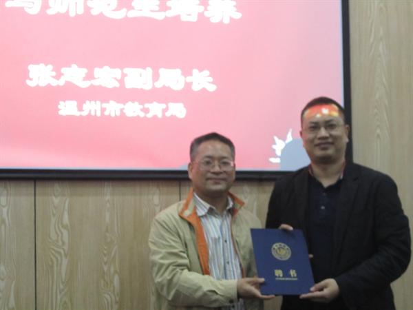 10月18日下午,金沙官网85级校友、温州市教育局副局长张志宏来到人文楼203报告厅,为100多名本科学生开设了《温州市基础教育现状与师范生培养》的讲座。讲座前,院长蔡贻象教授代表学校向张志宏副局长颁发了金沙集团1862cc顾问教授的聘书。