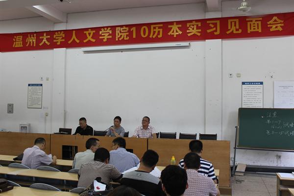 2013年9月9日,金沙官网10历本(师范)38名同学来到瑞安市飞云镇中学,开始了为期6周的教育实习。下午4点,教育实习见面会在飞云镇中学会议室举行。飞云镇中学校长诸葛建欣,副校长金程、相关部门负责人、实习指导老师,金沙官网蔡贻象院长、带队老师及全体实习生参加会议。