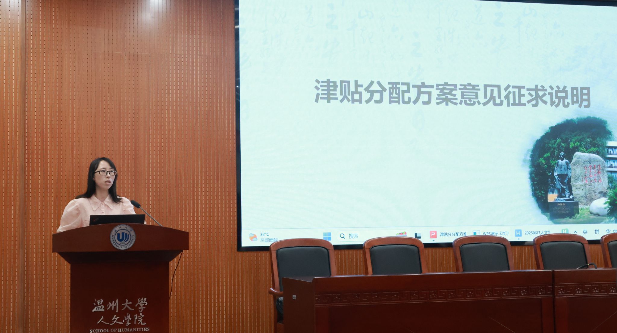 随后,陈源源副院长对学院津贴分配方案修订情况进行说明。根据学校最新要求和学院工作实际,为进一步激发办学活力,调动工作积极性,建立更为科学合理的分配制度,从去年下半年开始,学院着手对原先的分配方案进行修订,先后召开多次修订会和意见征求会,形成修订意见初稿。