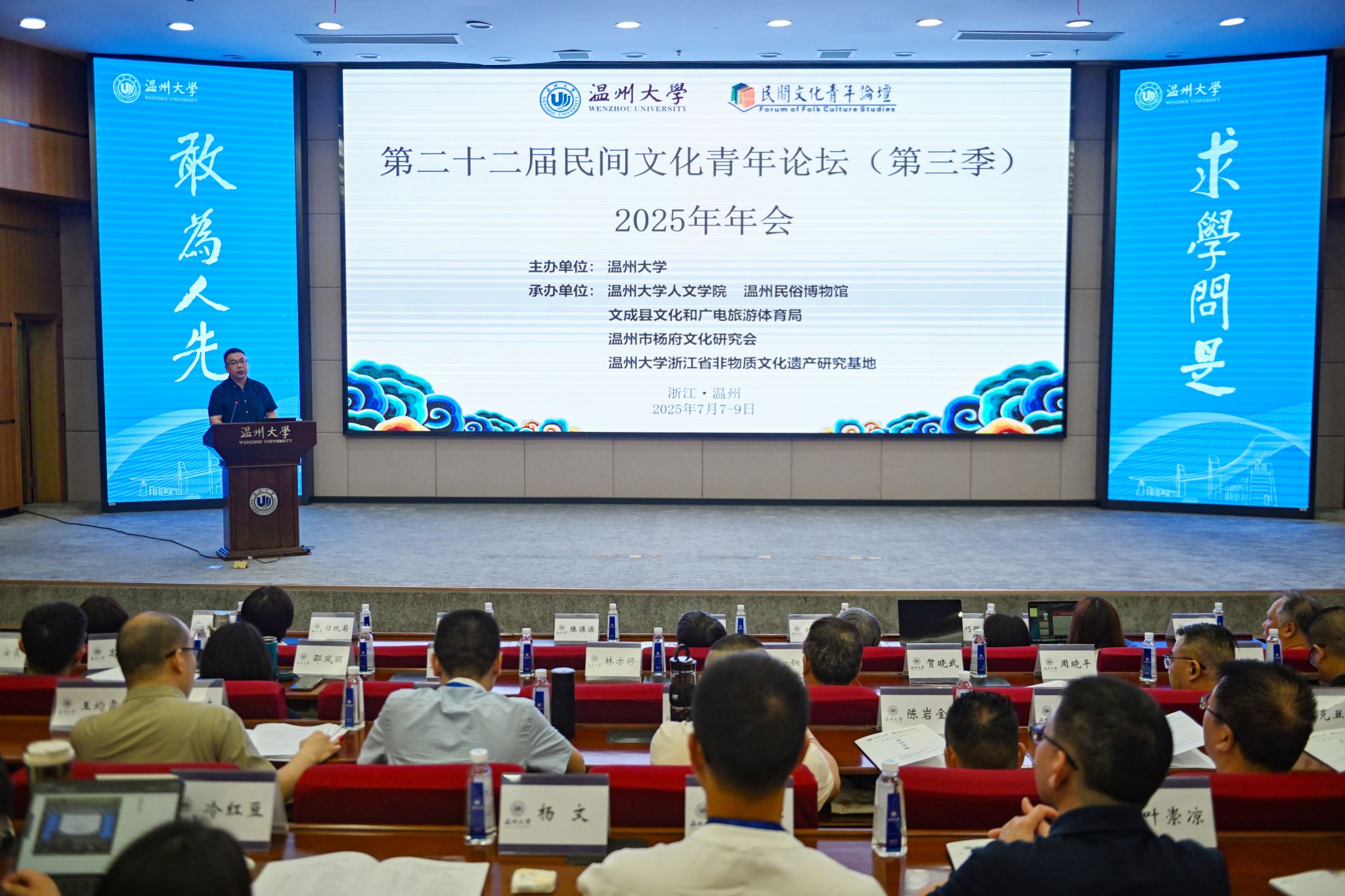 7月7日至8日,“第二十二届民间文化青年论坛(第三季)2025年年会”在金沙集团1862cc顺利举行。本次会议由金沙集团1862cc主办,金沙集团1862cc、温州民俗博物馆、文成县文化和广电旅游局、温州市杨府文化研究会以及金沙集团1862cc浙江省非物质文化遗产研究基地联合承办。