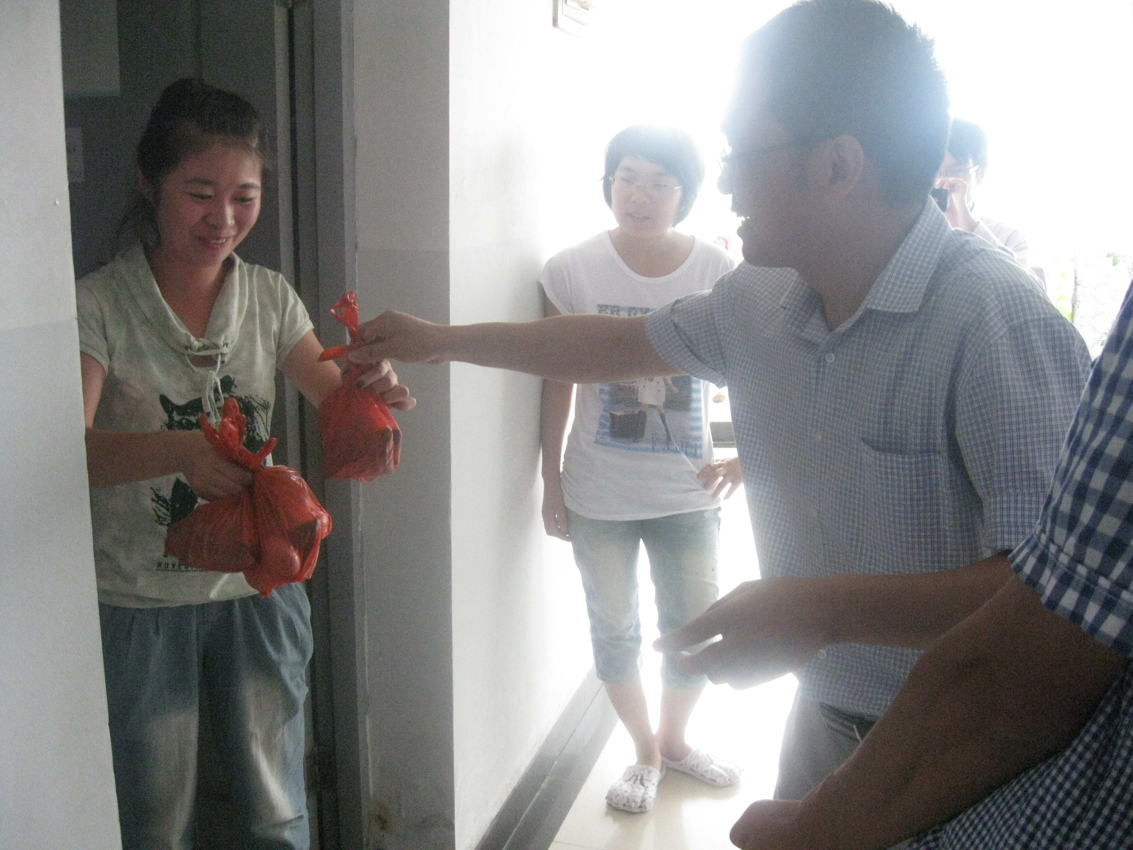 一年一度的端午节,一年一度的温情天。6月21日中午,金沙集团1862cc党总支书记吴静老师、副书记骆锤炼老师带领金沙集团1862cc各班班主任,在端午佳节来临之际来到学生寝室,为大家带来了学院特别准备的礼物--粽子。