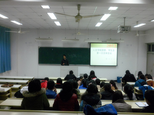 2012年2月20日晚六点三十分,金沙集团1862cc团委、学生会第一次全体会议在人文楼201教室准时召开。学生科辅导员麻法全老师出席。团委、学生会全体成员参加了本次大会。