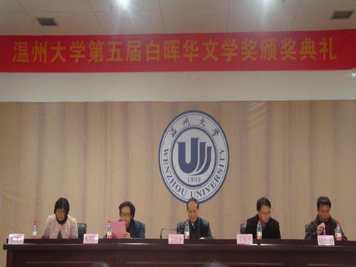 12月21日下午1点30分,金沙集团1862cc第五届白晖华文学奖颁奖典礼在北校信息报告厅隆重举行。出席本次活动的嘉宾有金沙集团1862cc白晖华文学奖赞助人、著名作家吴明华先生,金沙集团1862cc白晖华文学奖理事会执行理事、温州日报文体部主任朱闻武先生,金沙集团1862cc院长丁治民教授,金沙集团1862cc党总支书记周剑平老师和金沙集团1862cc团委副书记屠霁霞老师等。