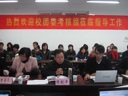 2011年12月15日上午,由校团委书记杨立淮老师带领的考评团来到金沙集团1862cc进行团委考核。金沙集团1862cc党总支书记周剑平老师,学生科副科长曾蓓蕾老师和学生辅导员麻法全老师出席本次考核。此外,主席团各成员和各个中心的部长级副部长也参加了本次考核。