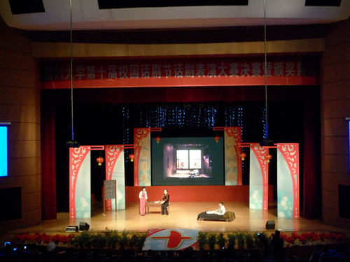 12月11日晚6点30分,金沙集团1862cc第十届话剧节话剧表演大赛决赛暨颁奖典礼在大学生活动中心演艺厅盛大开幕。
