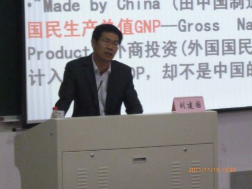 2011年11月16日下午,刘建国副院长在1-203为金沙集团1862cc第十四期党校学员作了《由数字看变化--我国近几年现代化建设的成就》专题讲座。