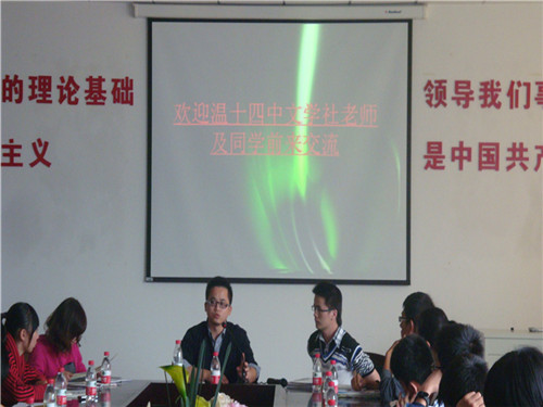 11月3日,温州第十四中学与温大三大媒体的文学沙龙在大学生活动中心B309隆重举行。温州第十四中学团委书记戴陈仪,奋飞文学社指导老师和全体社员以及温大青年,金沙集团1862cc文轩编辑部,栖风文学社三大温大媒体共同出席了本次会议。