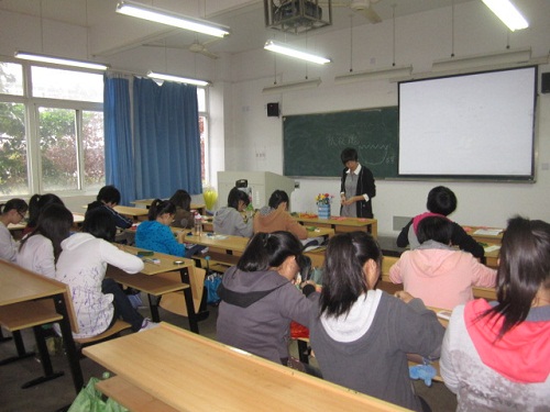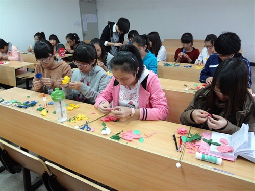 2011年11月9日1点30分,金沙集团1862cc一周一课的手艺培训班照常进行。讲师茅静飞与学员们在人文楼102教室,共同演绎了一场浪漫的纸玫瑰制作秀。