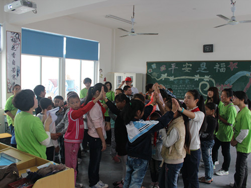 拽上秋季的尾翼,金沙集团1862cc思源志愿者们迎着秋季的稀薄的风与阳光,再次踏上三小的路。2011年11月5日上午,志愿者脸上浓得化不开的兴奋劲早已盖过了路途的疲惫,各自地拎着横幅,挂牌,水果。经过近四十分钟的车程,来到了五社路的三小。