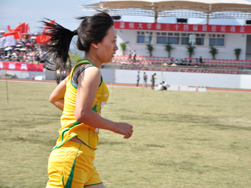 远远的,跑道上,黄色的身影闪亮醒目,那是我们金沙集团1862cc的刘菲菲同学。她正迈着均匀的步伐,绕过一圈又一圈,征服漫漫长途,向终点进发。汗水挥发在地,在红色跑道盛开着青春的花朵。迎着风,奔跑,生命的姿态因着运动而辉煌。