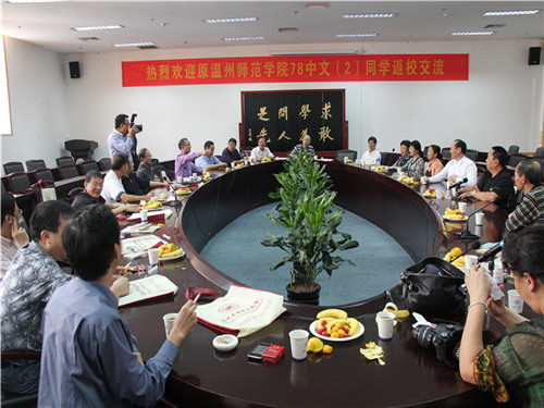 10月15日上午9点30分,原温州师范专科学院78级中文(2)班同学交流会活动在金沙集团1862cc会展中心白鹿厅举行。现任苍南龙港高级中学校长余贤庆、瑞安市教育局副局长曾定煜、宁波宁海县中学老师、全国优秀教师葛明霞,金沙集团1862cc瓯江学院党委书记赖学军等30多名校友参加了此次活动。