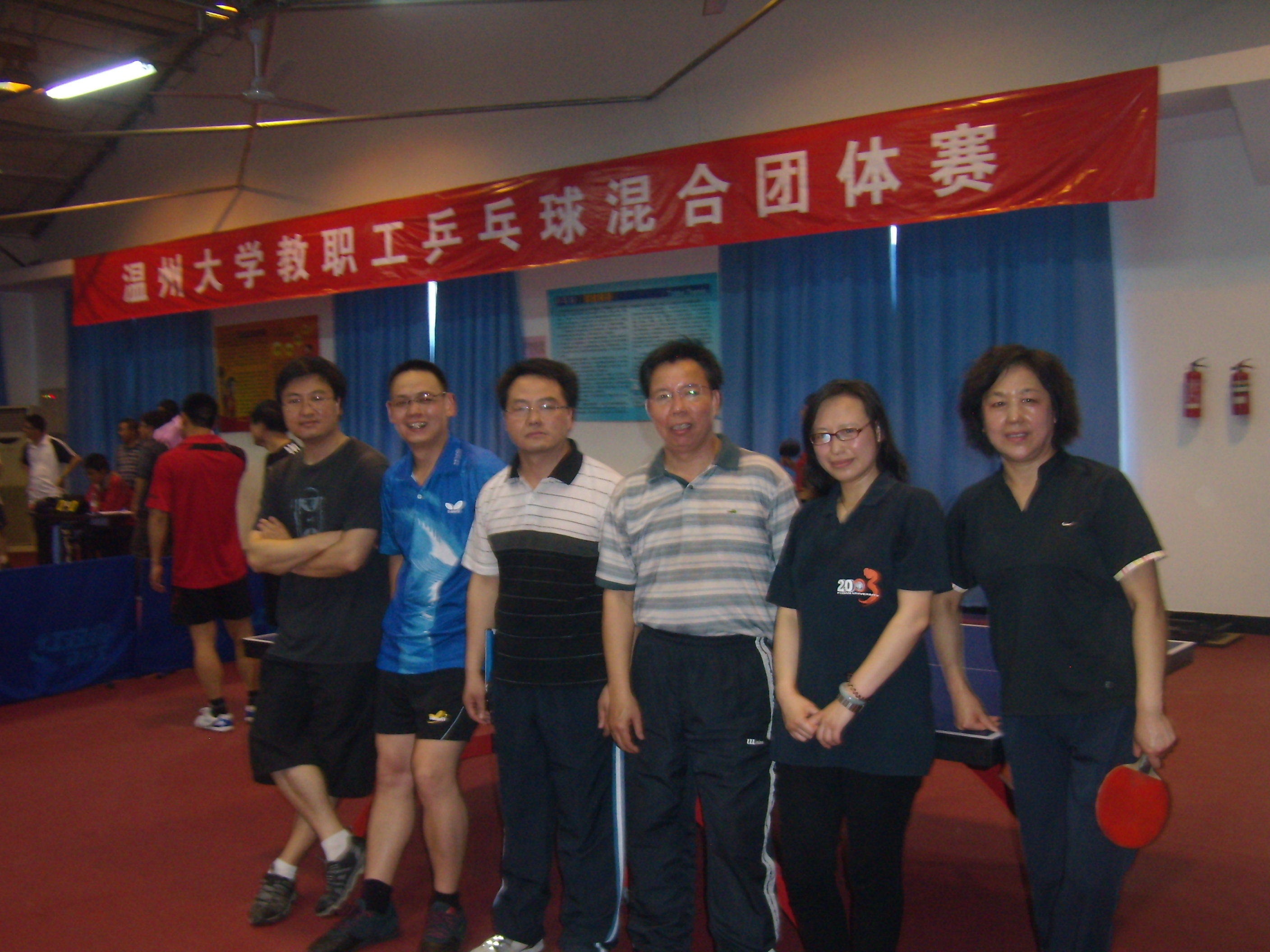 5月7-8日,2011年金沙集团1862cc教工乒乓球混合团体比赛在学院路校区的乒乓球馆举行。共有来自20只代表队的近两百名选手参加比赛。金沙官网乒乓球队由周剑平书记、丁治民院长和孙良好、陈勇、顾维杰、李冰等老师组成。在小组赛中,金沙官网代表队先后以3:1战胜党群科研联队和化材学院,3:2力克小组种子对后勤集团,2:3负于上届冠军教育学院,以小组第二晋级。在第二阶段的1/4淘汰赛中,金沙官网代表队与A组第一团学图书馆联队打满5盘,最终以3:2力挫对手,晋级四强。虽然在半决赛中1:3负于最终获得冠军的成教学院,季军之战中再以2:3负于教育学院,但第4名已是金沙官网教工乒乓球队取得的历史佳绩。