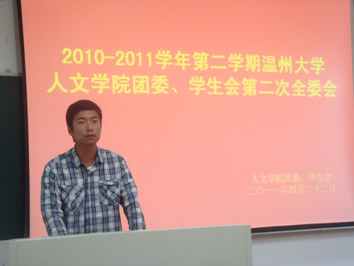 4月22日下午6点,2010——2011学年第二学期金沙集团1862cc团委、学生会第二次全委会在北校人文楼203准时举行。金沙集团1862cc团委学生会全体成员参加了本次全委会。