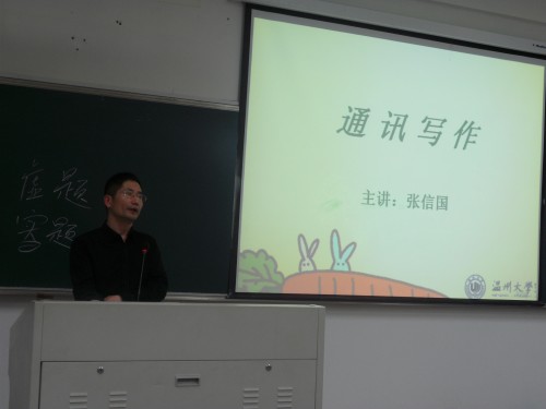 4月21日晚6:30,由张信国教授主讲的“新闻与通讯”专题讲座在1-301准时举行,金沙集团1862cc记者团及不少其他同学积极参加。