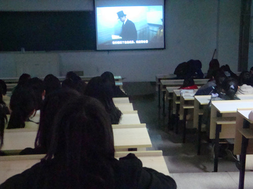 在观影同学们陆续到齐后,主办方开始播放影片《国王的演讲》。这部影片是今年奥斯卡最佳影片得主,同时还获得了最佳导演、最佳男主角和最佳原创剧本共四项大奖。影片讲述了英国国王乔治六世因为心理阴影和压抑而口吃,在医生的帮助下慢慢克服心理障碍,并在二战前发表了鼓舞人心的演讲的故事。屏幕上的影片高潮迭起,在座的同学们看得津津有味。最后在影片的片尾曲中,大家一边交流着观影心得一边离开了。