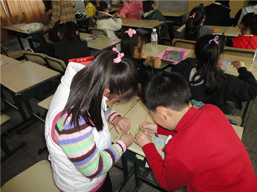 8点30分,兴趣班开学仪式正式开始。首先是志愿者代表对于上学期志愿者活动的简短总结与新学期活动的规划陈述。然后由一名英语口语班志愿者献上一首动听的英文歌《Take Me Home, Country Road》,小朋友也不甘示弱,现场给我们带来了一首动听的儿歌。接着一名手语班志愿者的志愿者带来了一段《最好的未来》,最后玩互动游戏贴膏药,开学仪式在轻松快乐和谐的气氛中结束。9点30分,小朋友们在志愿者的带领下回到教室,开始了各自的兴趣班课程,课程内容包括美术、中国结、剪纸折纸、英语口语、趣味体育等,涉及课堂内容拓展及课外素拓培训。小朋友踊跃参与兴趣班的培训,志愿者和小朋友互动积极,课堂氛围很好。
