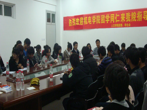 3月20日晚6点30分,在北校人文楼213室举行了金沙集团1862cc和机电学院团委学生会的工作交流会。两个学院各个部门的部长及干事出席了此次交流会。