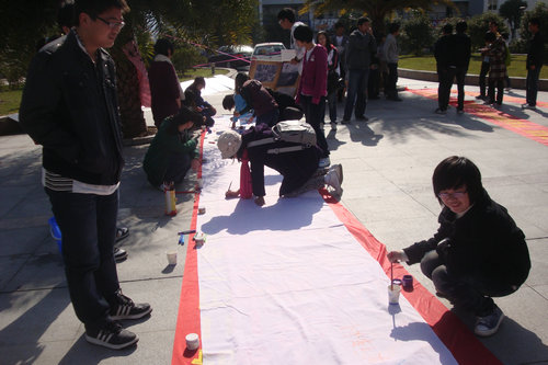 12月8日中午12点30分,金沙集团1862cc团委学生会社团部举办了“纪念一二•九”涂鸦活动。院大一大二各班级均积极参与,在宿舍C区中心花园进行了涂鸦活动,向一二•九运动致敬。