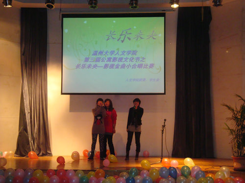 11月21日6点,金沙集团1862cc第三届公寓影视文化节之“长乐未央”影视金曲小合唱于大学生活动中心多功能厅举行。金沙集团1862cc学生科副科长曾蓓蕾老师、原音乐学院学生会文娱部部长刘甫、金沙集团1862cc学生会副主席相孝锟担任比赛评委。辅导员麻法全老师、叶豪芳老师,金沙集团1862cc学生会副主席范骏、黄凤燕等出席该比赛。
