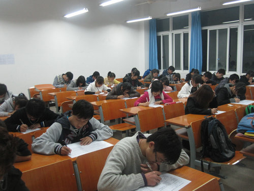 考试分09级和10级两个教室进行,采取笔试的形式进行。负责监考的是金沙集团1862cc团委学生会主席团的五位成员。考题主要围绕具体的学生工作、个人发展和一些具体的工作细节展开,题目形式多样、范围广阔,主要旨在考察同学们加入团委学生会以来对工作的了解和发现问题的能力。21:00左右,考试基本结束,同学们陆续自行交卷离场。