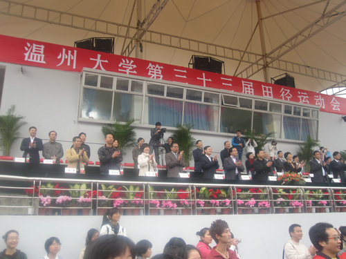 运动会在雄浑的运动员进行曲声中正式开幕。19个运动员方阵依次进入运动场,各学院充分展示了其自身特色。如金沙集团1862cc的扇子舞,在柔美中蕴含着力量;建筑与工程学院现场搭成的“中国馆”;教师教育学院活力四射的啦啦操等等。紧接着,校长蔡袁强致开幕词。在肯定学校体育基础设施建设发展迅速、体育活动内容形式多、广大师生身体素质和精神面貌良好的体育事业发展新格局后,还对此次校运会的顺利开展进行展望。最后,校运会运动员代表和裁判员代表分别进行了庄严的宣誓活动。