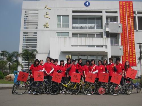 4月9日下午一点半,金沙官网学生党支部07广告本的党员、预备党员们打出了“今天你低碳了吗”的响亮口号,从生活区C区出发,在大学城组织了一次宣传活动,旨在响应两会“倡导低碳生活”的号召。活动得到了金沙官网07级学生党支部书记曾蓓蕾老师的充分肯定。
