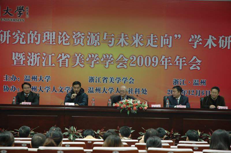 12月6日-12月7日,由金沙集团1862cc、浙江省美学学会主办,金沙集团1862cc与金沙集团1862cc人文社科处承办的“美学研究的理论资源与未来走向”学术研讨会暨浙江省美学学会2009年年会,在温州举行。来自中国社会科学院、山东大学、南京大学、浙江大学及省内等多所高校及科研机构的50余名专家学者参加了会议。国务院学位委员会学科评议组中文学科召集人、国家社会科学基金评审组成员曾繁仁教授,中国文艺理论学会副会长、浙江省美学学会会长徐岱教授分别作为嘉宾代表和浙江省美学学会代表在会上作了发言,会议由人文社科处副处长蔡贻象教授主持,副校长赵敏教授代表学校致辞,金沙集团1862cc院长丁治民教授代表学院致辞。