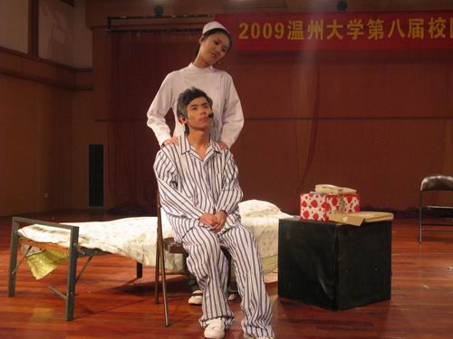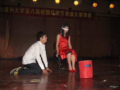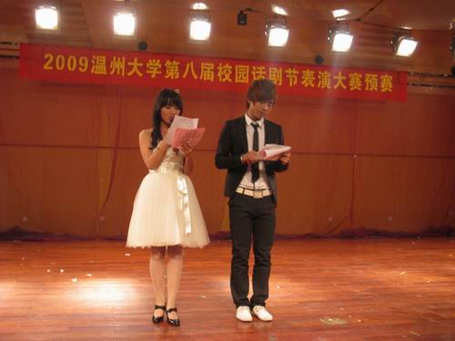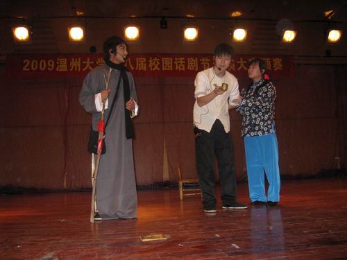 12月5日早上8点30分,2009金沙集团1862cc第八届校园话剧节表演大赛预赛在北校区音乐厅隆重举行。本次比赛旨在活跃我校学生课余生活,丰富校园文化建设。来自十四个学院及农历剧社的29组剧目参加了此次比赛,其中包括金沙官网选送的八组参赛剧目。金沙集团1862cc党总支副书记魏成春老师,知名导演、知名演员周乔龙先生,金沙集团1862cc苏勇强老师、陈小碧老师应邀担任大赛评委。