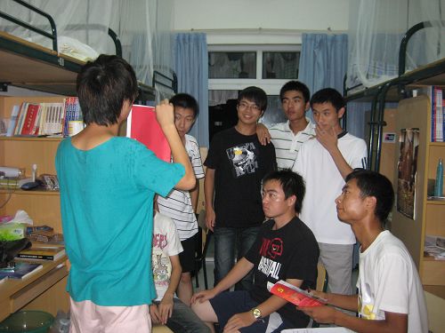 晚上6:30,党员们一起行动,每两个党员为一组与一个新生寝室结对。党员们一进寝室就受到了学弟学妹们的热情欢迎,让大家倍感亲切。党员们和新生们坐在一起侃侃而谈,谈党、谈学习、谈工作以及他们正要面对的大学生活。在谈话中,党员们发现新生中有很多志愿加入中国共产党的同学,然而他们对于一些入党的程序和基本的党务知识却还是不太了解,因而党员们向他们重点介绍了入党的程序和相关党务知识。