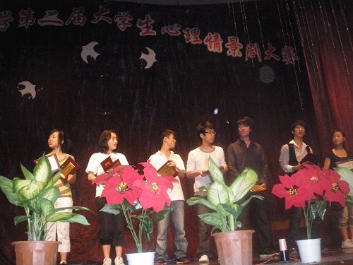 2009年5月9日,由金沙集团1862cc心理健康教育中心主办,金沙集团1862cc团委学生会与校心理协会承办的心理协会 “第五届心理健康教育节”系列活动之“金沙集团1862cc第二届心理情景剧大赛”在南校音乐厅拉开帷幕。参加此次大赛的有来自各学院的18支代表队。校心理健康中心主任张海音老师、心理咨询师王晓程老师、杨德省老师等5位老师应邀出席了本次大赛并担任评委。