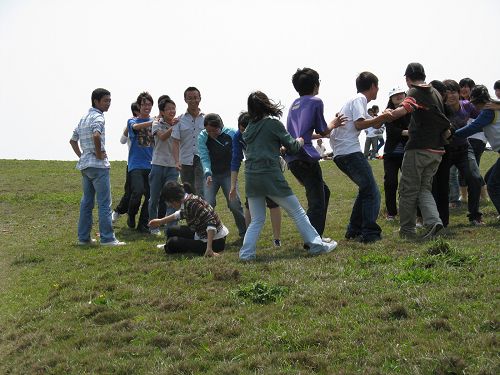 早上7:30,学生会成员们带着各自所需的随行物品在北校门口集合,辅导员麻法全老师向大家强调了此次洞头之旅过程中所要注意的安全和卫生等问题。在途中大家都有说有笑,兴致勃勃,近两个小时的车程在大家的欢声笑语中不知不觉的流逝。到达洞头后,同学们在游船港口登船前往无人岛,由于许多同学都是第一次见到大海,因而都十分的兴奋,一路高歌。登岛之后,同学们“翻山越岭”来到了岛的最东端,在草地上,同学们围成一圈玩起了各种各样的游戏,气氛融洽,欢声笑语不断,大家都玩得十分的开心。下午2:00,同学们合影留念后,恋恋不舍地踏上了归程。归途中,同学们再次领略到了“神州海上第一屏”的鬼斧神工。