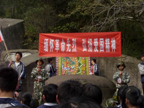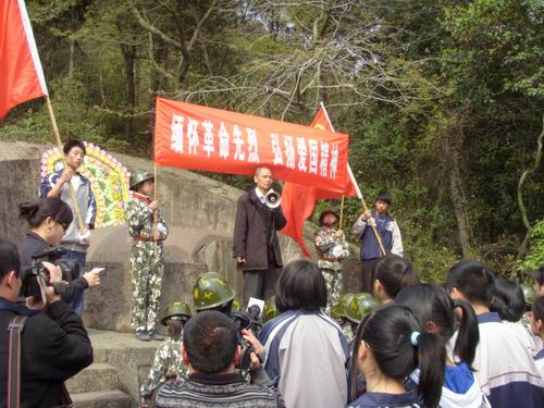 2009年4月2日下午,在丽岙镇团委的带领下,丽岙三小学生武装连、华侨中学、任岩松中学的学生们和金沙集团1862cc青年志愿者协会的志愿者们一起参与了革命烈士的扫墓活动。