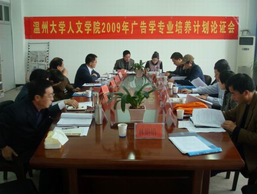 3月20日下午,金沙集团1862cc召开广告学专业培养方案专家论证会,专家组由浙江大学广告学系主任胡晓云教授、浙江工业大学广告系主任张雷教授、宁波大学传播与艺术学院原院长陈月明教授,温州市高速广告有限公司董事长、广告协会副会长李玉信,温州市长运广告公司董事长、广告协会副会长郑元林、美术学院副院长舒湘鄂教授、商学院李忠宽博士组成。