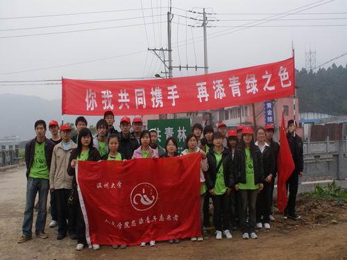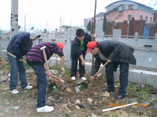 2008年3月11日,金沙集团1862cc思源青年志愿者来到丽岙镇,与当地的机关政府领导、企业员工和学生代表一起参与了植树活动。