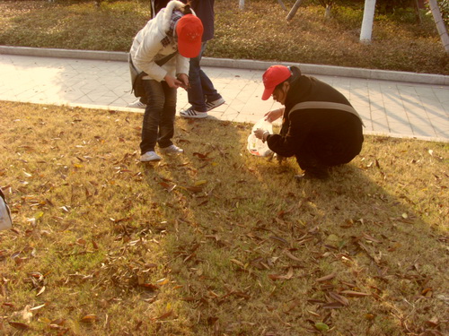 2008年12月15日,金沙集团1862cc思源青年志愿者协会开展了一次捡拾树叶的活动。