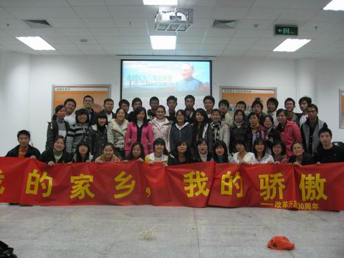 2008年12月5日,金沙集团1862cc08历本举行了以“我的家乡,我的骄傲——改革开放30周年”为主题的团日活动。学院辅导员曾蓓蕾老师、蔡晓武老师、麻法全老师、学生会成员及大一各班班长和团支书一同前来观摩了此次活动。