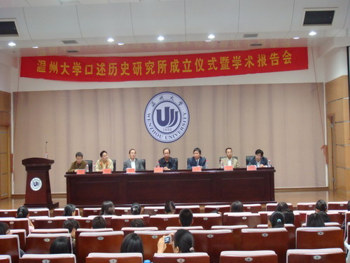 2008年11月12日下午1点30分,金沙集团1862cc口述历史研究所成立仪式暨学术报告会在金沙集团1862cc北校信息楼报告厅隆重举行。中国社会科学院世界历史研究所所长、中国史学会副会长于沛教授,中华口述历史研究会秘书长、中国社会科学院近代史研究所研究员、文化史研究室副主任左玉河教授,中国社会科学院文献信息中心副主任杨雁斌教授,金沙集团1862cc校长助理赵敏老师,校科研处副处长蔡贻象教授,金沙集团1862cc书记周剑平老师,副院长刘建国老师以及院杨祥银博士出席了本次研究所成立仪式。刘建国老师主持仪式,杨祥银老师主持学术报告。