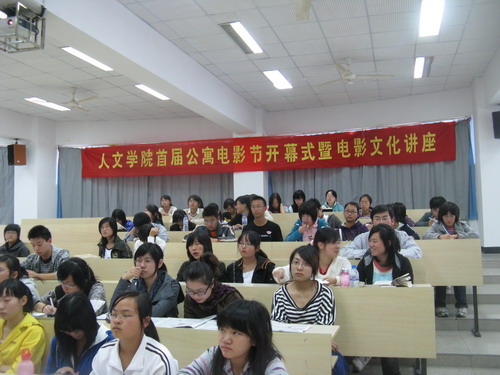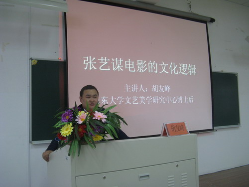 本次讲座也是金沙集团1862cc首届"公寓电影节"的开幕式,主讲人是山东大学文艺美学研究所博士后胡友峰老师。首先胡友峰老师介绍了全球电影的多种模式以及张艺谋的简历,通过年谱展示了张艺谋从一个普通人一步步迈向高峰的全过程。其中穿插介绍了张艺谋的多部大作,如《大红灯笼高高挂》、《秋菊打官司》、《活着》等影片,让我们看到了一个勤奋认真、低调平和的大导演,也见证了他的成功之路。之后胡老师又用精炼恰当的语言对张艺谋的电影进行了总体概括,提炼出了"最有生命力的激情"、"最深沉的讲述"、"最诗意的武侠"等精辟的形容词,让我们对张艺谋的电影有了一个整体性的印象。