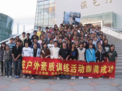 2008年11月12日,金沙集团1862cc、体育学院、教育学院团委学生会联合在大学生活动中心喷泉广场举行了户外素质拓展训练。