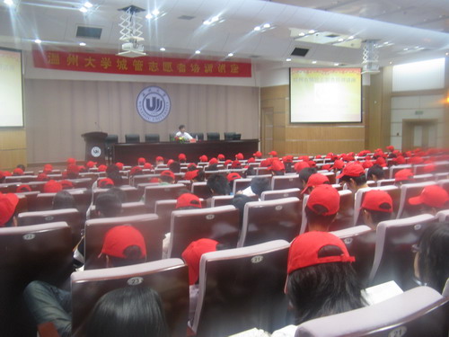 在简短的介绍词后,我们荣幸地请上了李世斌局长,正式开始志愿者培训讲座。李局长从四川汶川大地震时江苏某民营企业的民间抢险队救灾事迹说起,突出了志愿者工作的意义以及重要性。然后他谈到了政府职能的转变,要求广大公民参与到城市管理中去,实现现代化城市管理,真正达到"人民城市人民管,管好城市为人民"的理念。接着李局长从经常出现的违章现象说起,介绍了城管志愿者工作的知识和意义以及成为一名志愿者的必要素质。李局长还向我们介绍了温州市执法局的工作职责、执法依据等等,活动最后还进行了城管知识问答的互动环节,志愿者抢答踊跃,现场气氛热烈。